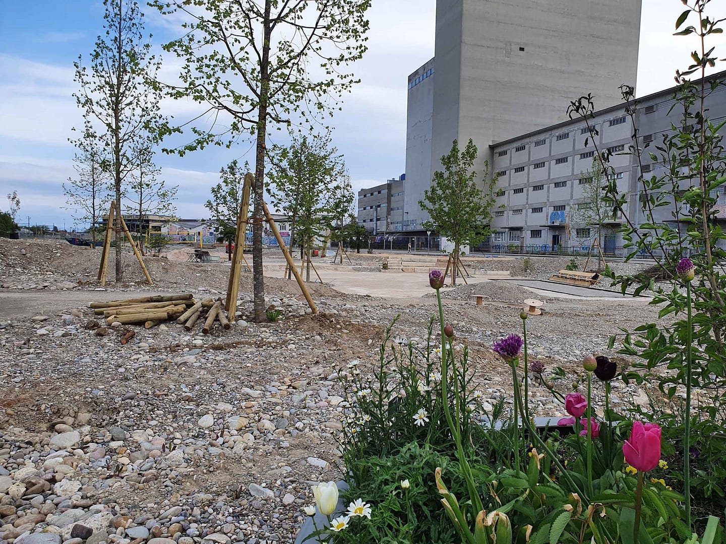 Bis zum Baustart im Frühjahr 2024 stand seit Juli 2021 das Baufeld 2 mit einer Fläche von rund 19 Hektaren für die Zwischennutzung «Lysa Büchels Garten» zur Verfügung. Ziel war es, das Areal zu beleben und die Quartier- und Stadtbevölkerung in die Entwicklung des neuen Stadtraums einzubeziehen, was auch gelungen ist.