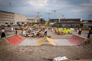 Der Verein Skateboardkultur Basel kennt sich aus mit Skateboardanlagen und Zwischennutzungen: Von 2006 bis 2012 war der «Black Cross Bowl» auf dem nt-Areal das unumstrittene Zentrum aller Skate-Aktivitäten in Basel, seit 2012 hat «Port Land» im Hafen diese Rolle inne. In Lysa Büchels Garten wird das Angebot um eine anfängerfreundlich konstruierte Miniramp ergänzt.